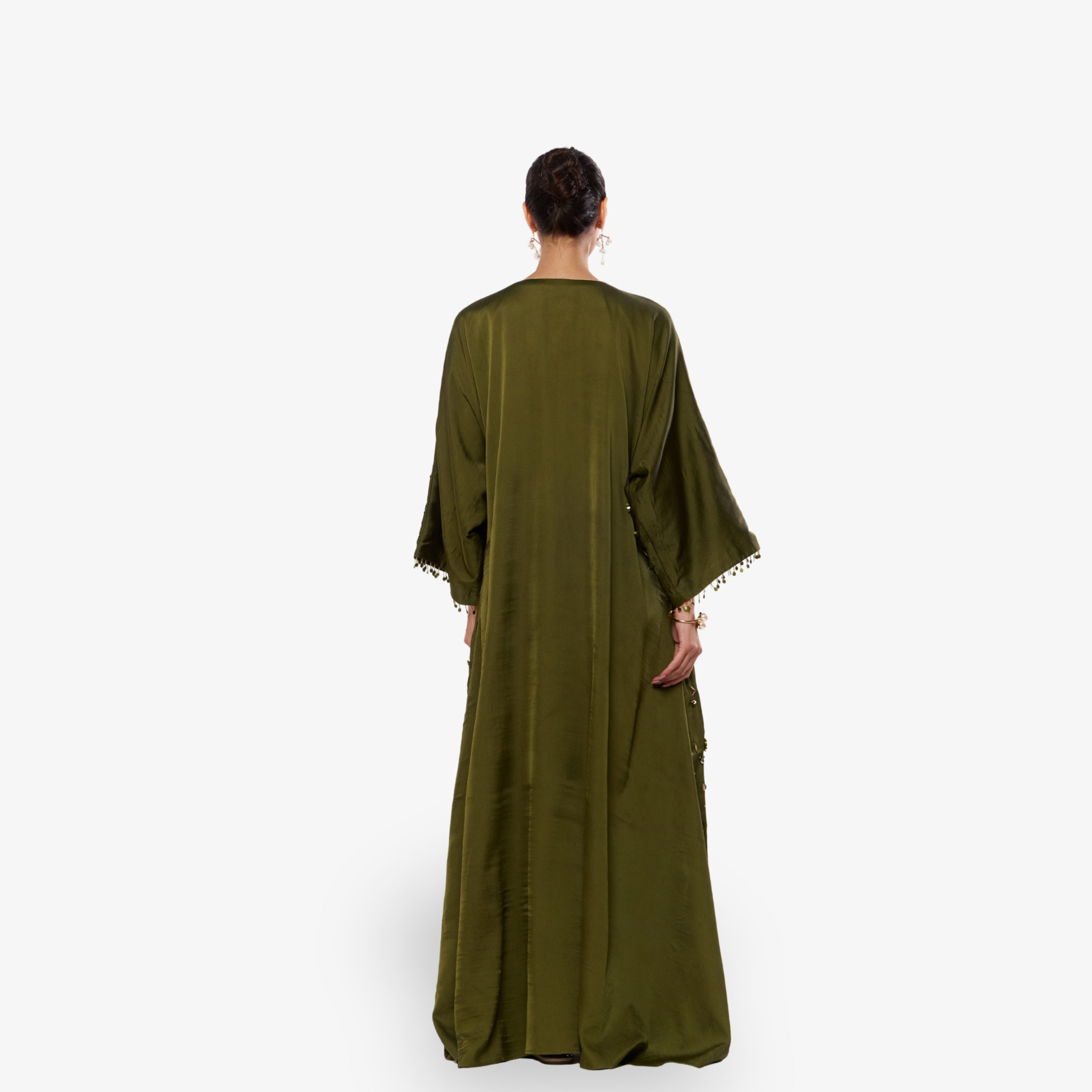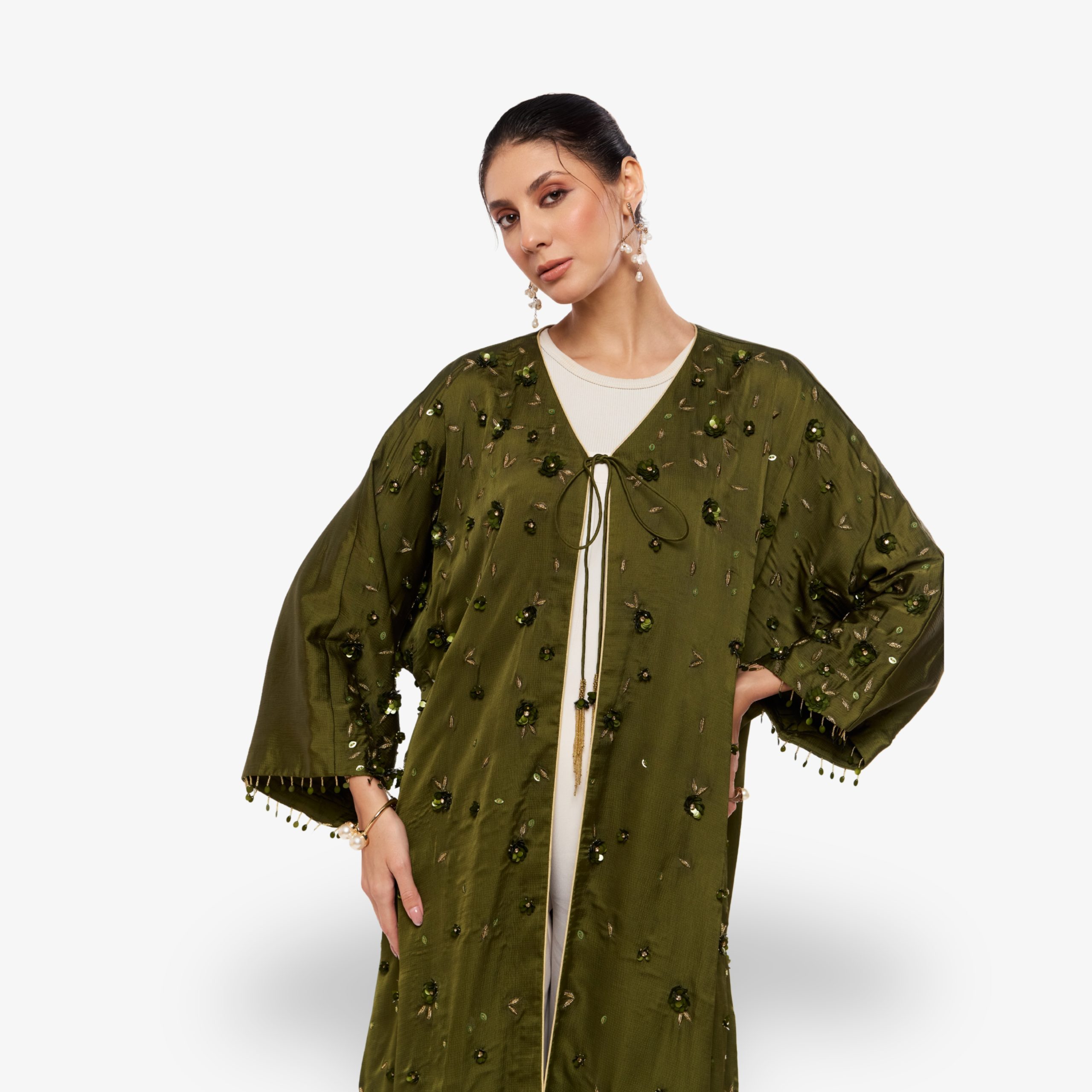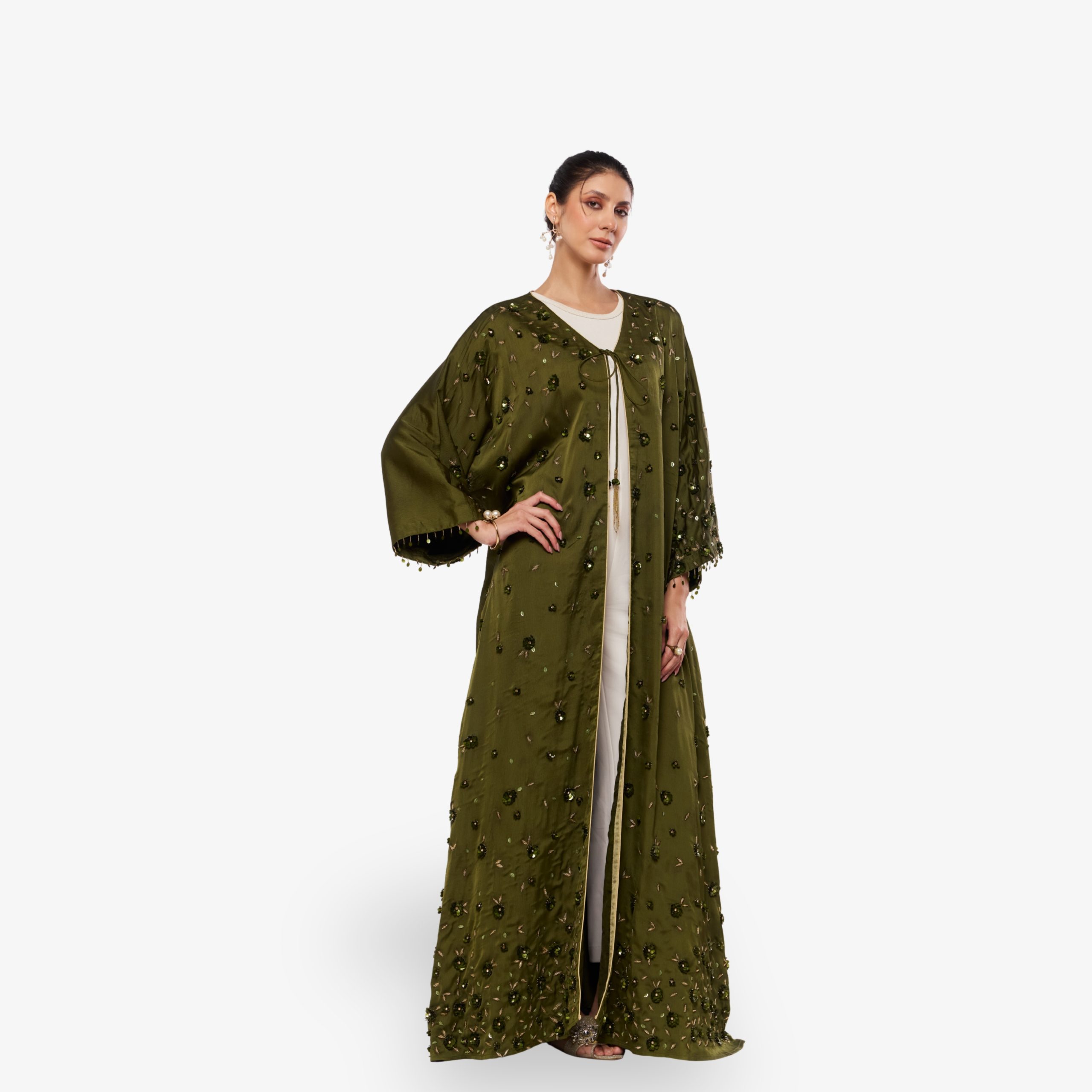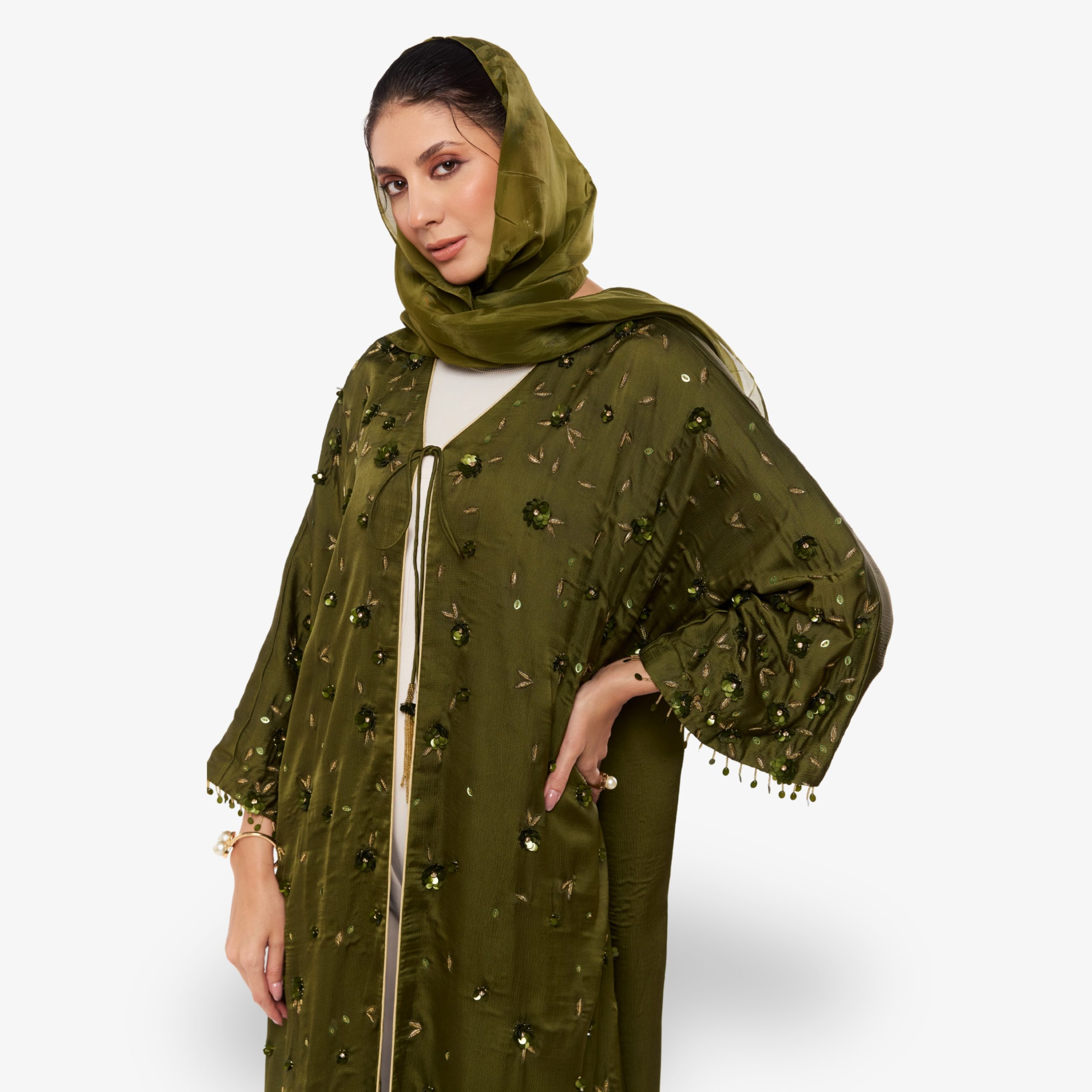 Olive Élan Hand-Embroidered Como Crepe Abaya